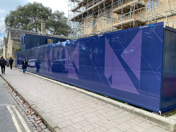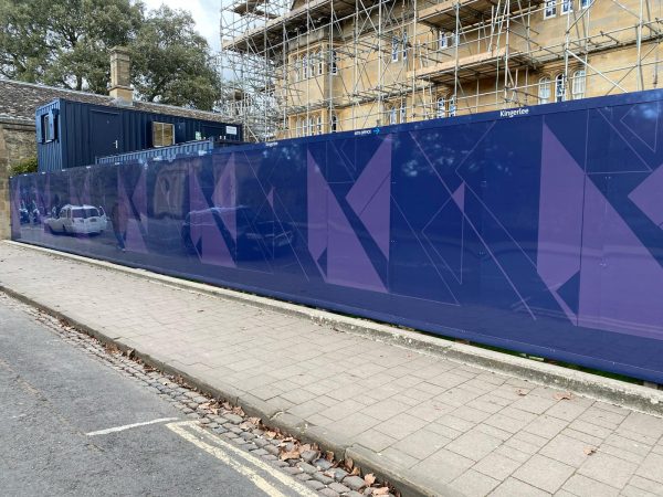 Hobs were tasked by our customer Kingerlee to provide hoarding signage to surround works at Wadham College in central Oxford. The design concept was created by Anthony in the Kingerlee graphics team, and Hobs provided prepress and visual support. The project was managed by Hobs from initial site survey, samples and production, through to install completion.