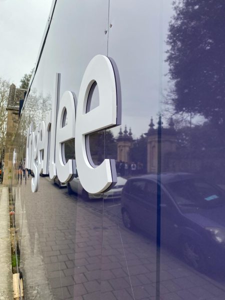The ACM panels were produced on our Océ Arizona flatbeds and finished on our Zund cutter, together with the standoff logo lettering. The panels were fixed to the timber hoarding line, along with printed headers and kickers, and the 3D lettering applied to the face of the panels to give a “stand-off” look. The hoarding graphics stood proud for around 12 months in central Oxford promoting the company and the works in the best possible fashion.